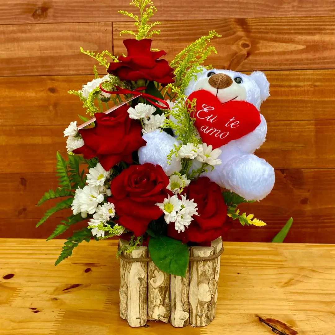 Surpreenda com um presente que expressa todo o seu amor! O Arranjo de Rosas Vermelhas “Te Amo” exclusivo traz rosas vermelhas frescas dispostas em um cachepô de madeira rústico e elegante, acompanhado por uma pelúcia “Te Amo” que adiciona um toque carinhoso e especial. Ideal para comemorações românticas, como aniversários de relacionamento, Dia dos Namorados, ou qualquer momento onde o amor é protagonista.