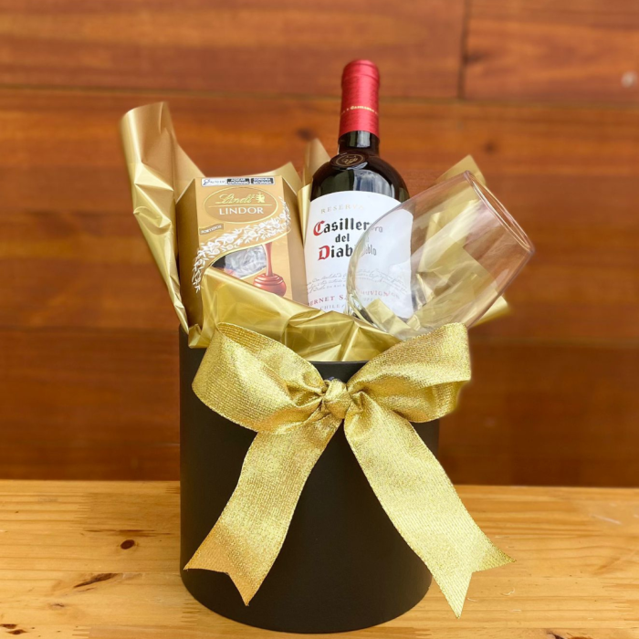 Delicie-se com o nosso Box de Presente, que combina o aclamado Vinho Casillero del Diablo, uma elegante taça e uma caixa de trufas Lindt. Este presente sofisticado é perfeito para celebrar ocasiões especiais como aniversários, casamentos ou simplesmente para surpreender alguém querido. O Vinho Casillero del Diablo é um vinho chileno premiado, conhecido por suas notas frutadas e encorpadas, ideal para acompanhar momentos de alegria.