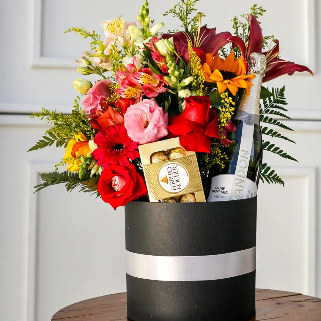 Surpreenda quem você ama com nosso exclusivo Box de Flores e Chandon. Esta combinação sofisticada é ideal para qualquer ocasião, oferecendo um presente que une beleza e sabor em uma apresentação elegante.