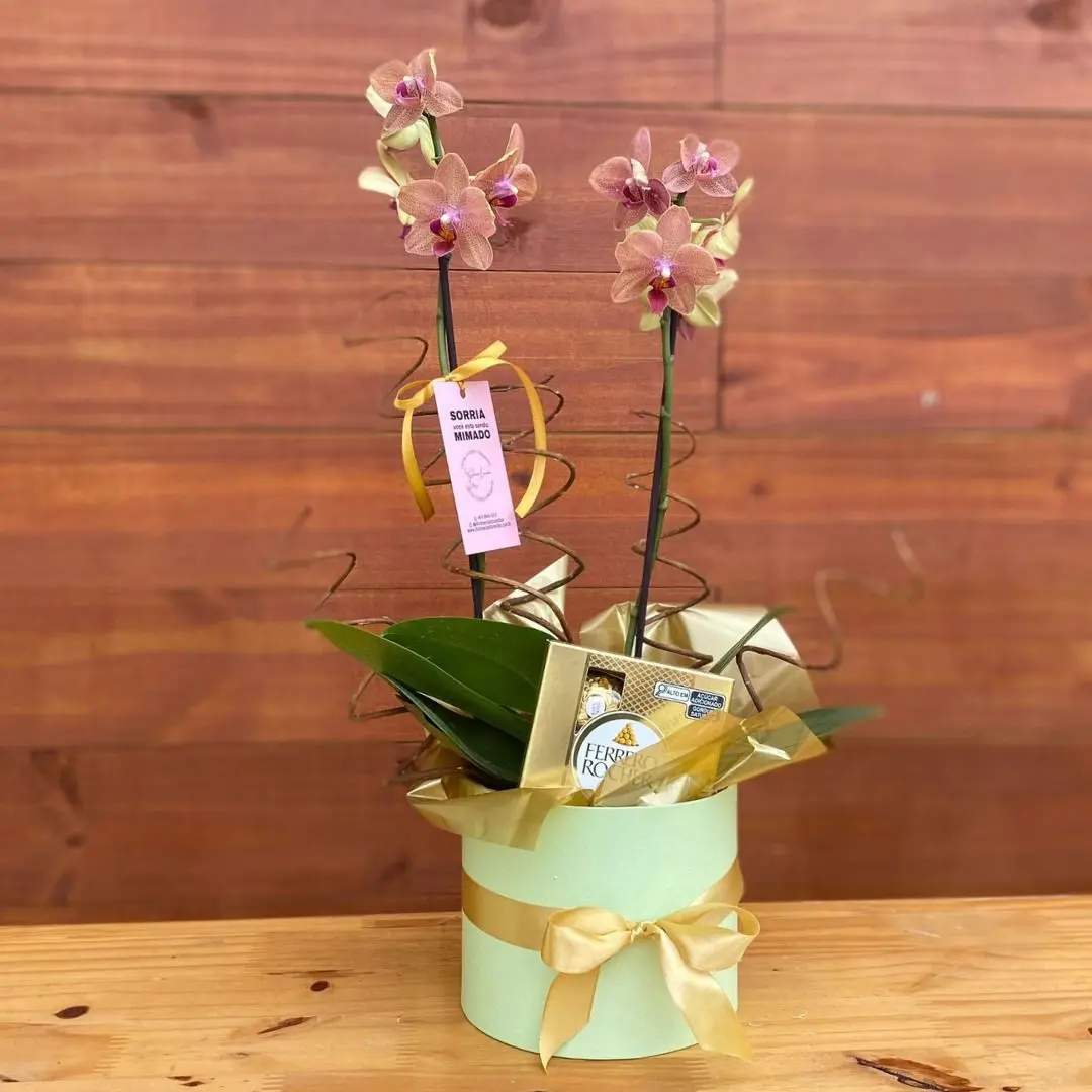 Linda Box com Orquidea Com Ferrero, ideal para presentar aquela pessoa especial.