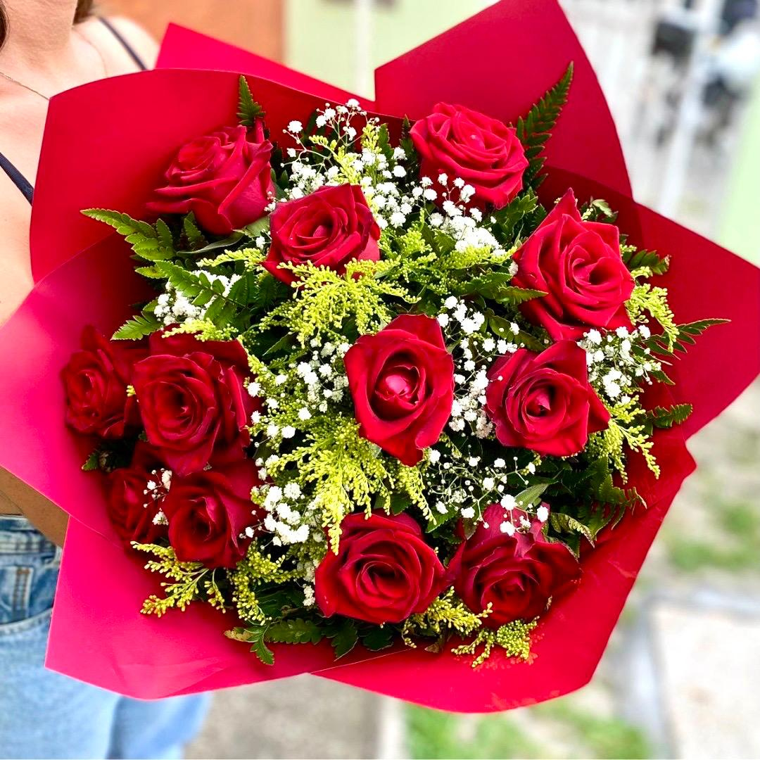 Surpreenda com o clássico Buquê de 12 Rosas Vermelhas e torne qualquer ocasião inesquecível!