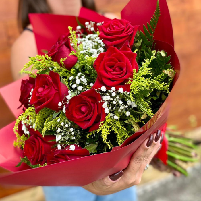 - Quantidade: 12 rosas vermelhas frescas e vibrantes