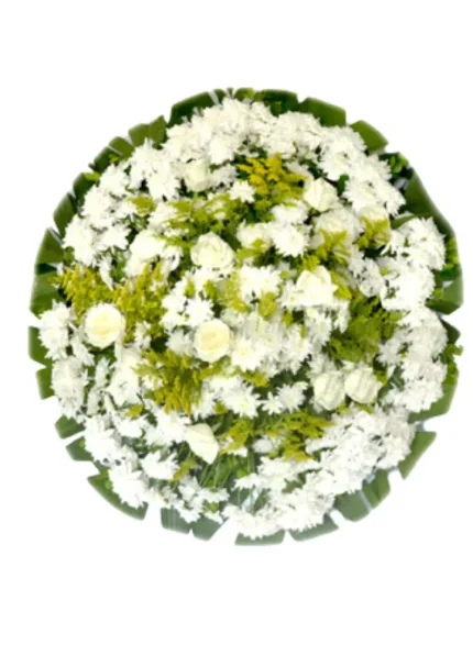 Flores que podem conter na coroa: Rosas, crisântemos, margaridas e complemento floral.